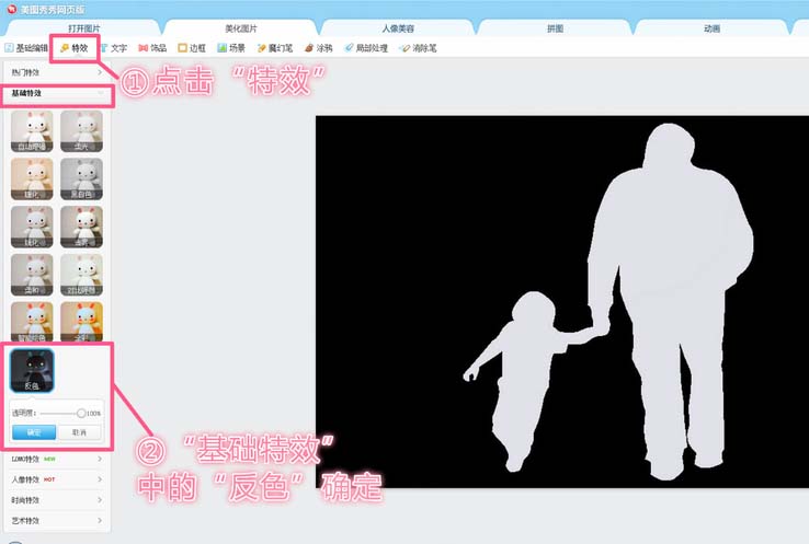 2、使用反色特效,保存。