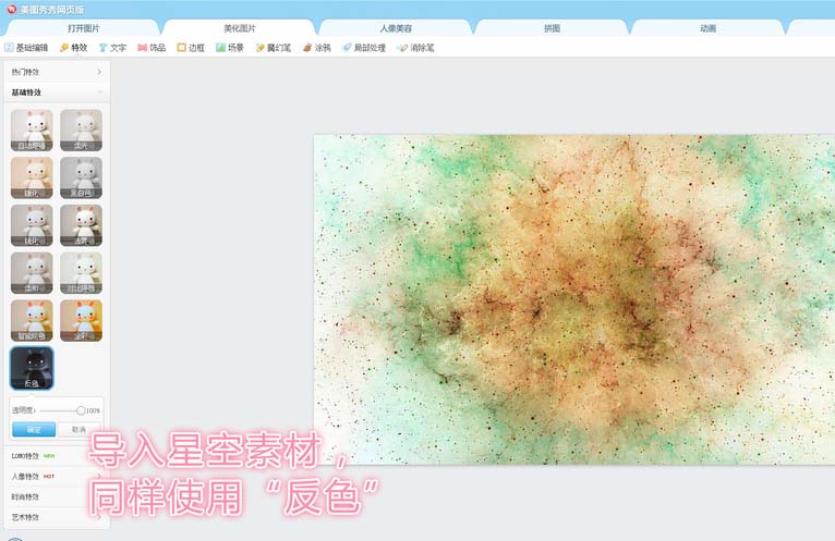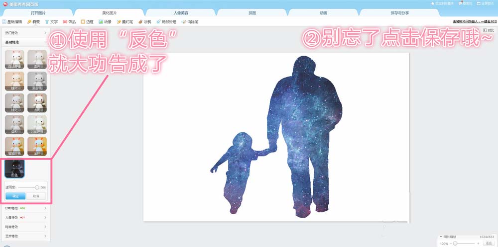 6、使用反色特效,保存。