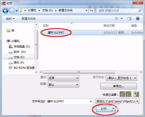 2、在弹出的文件“打开”窗口中选择以画好的零件模型图,如下图