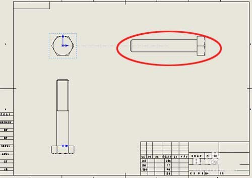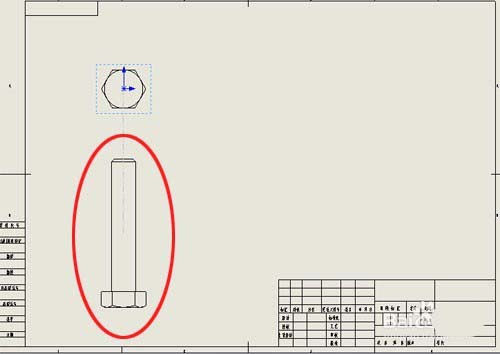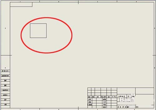 3、如下图在方框位置放置零件主视图,单击鼠标左键进行放置