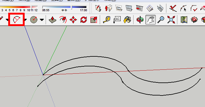 2、用“圆弧”画出两道曲线,并封上曲线形成平面。