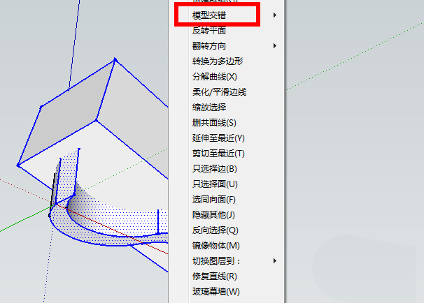 6、选中全部,单机右键选中“模型交错”,截面出现相交实线。