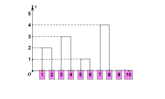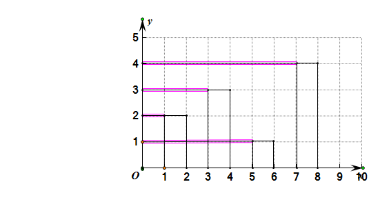 7、然后画出水平线表示各矩形的高度,把它们设置为虚线。