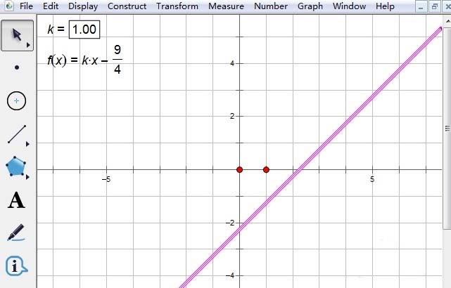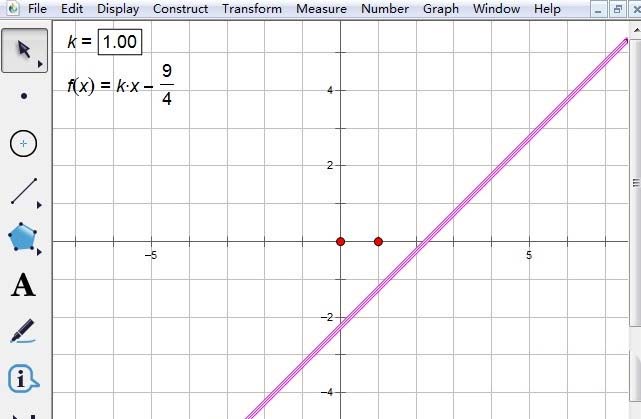 对于系数确定的一次函数,可以通过列表、描点、连线的方法画出其具体的函数图像,那么如果是系数不确定的一次函数,该怎么表现出其函数图像呢?作为辅助数学学习的工具,几何画板不仅可以用来画解析式确定的函数图像,对于那些系数为参数的函数图像也是可以构造的,就比如用几何画板画出y=kx-9/4的图像,通过改变系数k的值,就可以观看不同的一次函数图像。