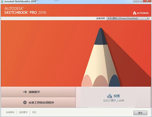 下载完成后,先安装 Autodesk SketchBook Pro 2016 ,如图:(安装大家应该都会吧,不用小编多说咯...)