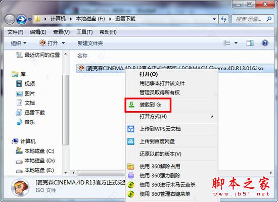 2、安装需要使用虚拟光驱,没有的朋友可以点击在本站下载,如DVDFab Virtual Drive,将Cinema4DR13镜像文件右键载入,不要使用解压文件,会安装错误。
