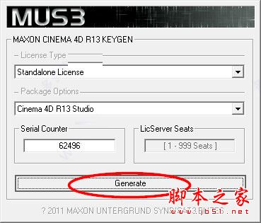 6、打开C4D R13注册机,点击Generate