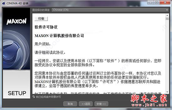 8、勾选第一项“Cinema4D”,点继续