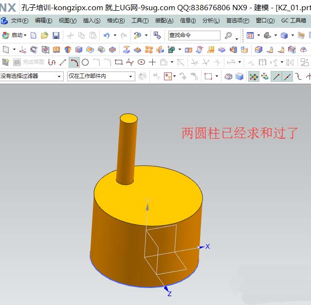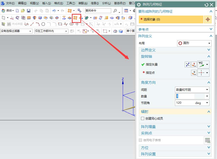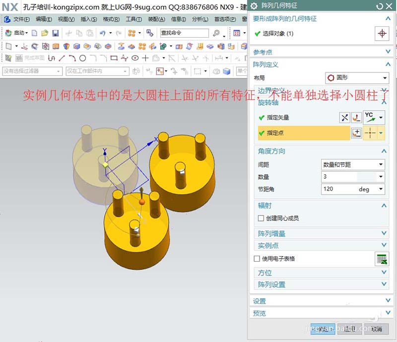 2、如下图,如想对大圆柱和小圆柱同时复制,可以使用阵列几何体;因为大圆柱和小圆柱是属于同一个几何体;