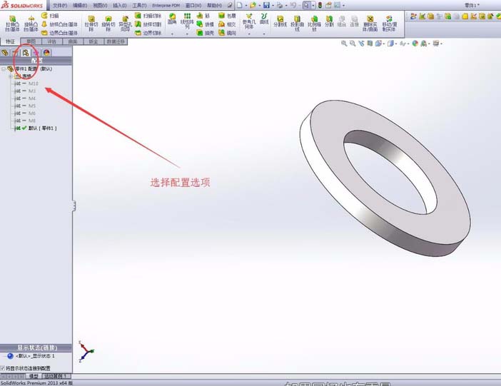 1、打开我们上次创建的小垫圈,在设计树的管理器中选择配置,就能看到零件的配置