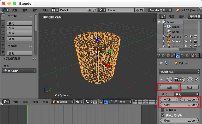5、现在我们再创建个圆柱体,添加“重构网格”修改器。