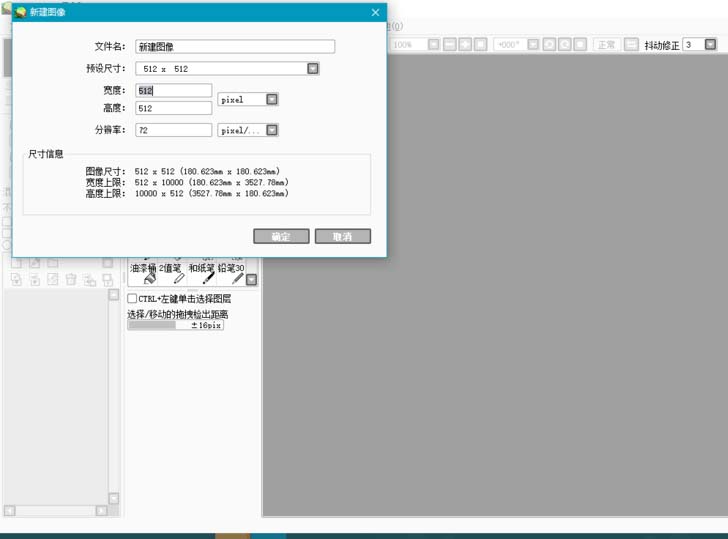 1、我们首先打开sai绘画软件,新建一个空白的工作文件,文件名、宽度、高度可以根据要求自由设置,设置好之后点击确定