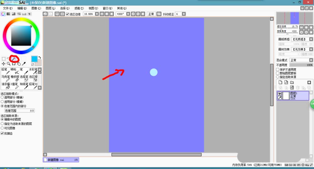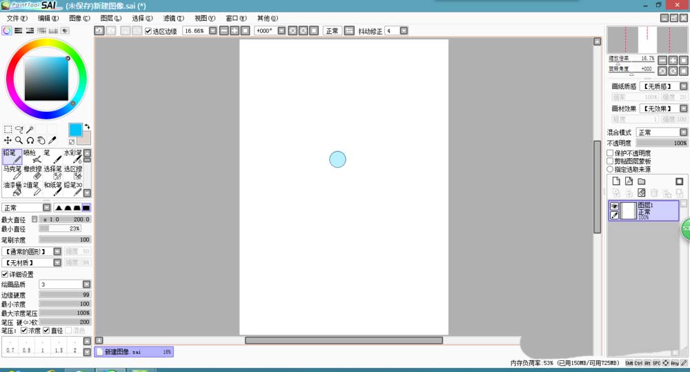 1、打开sai软件,新建一个画布,选择铅笔工具