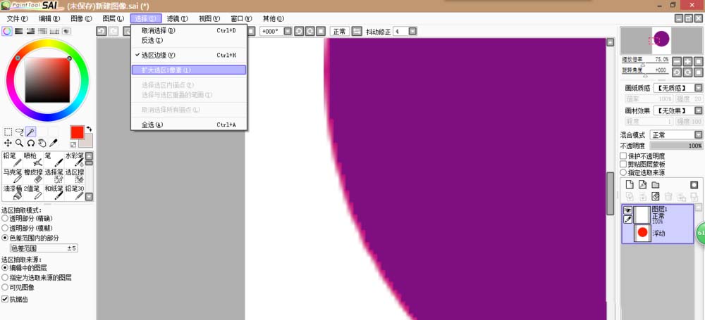 7、若觉得圆有一些虚边,可点击“选择——扩大选区1像素”