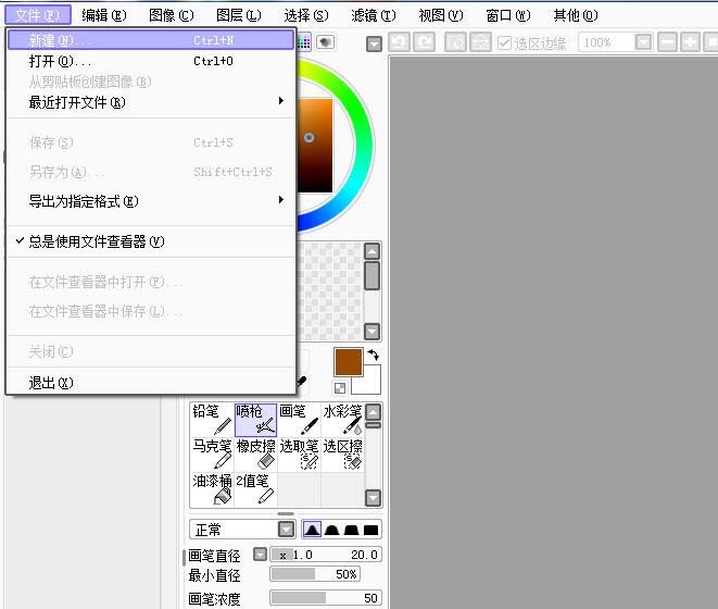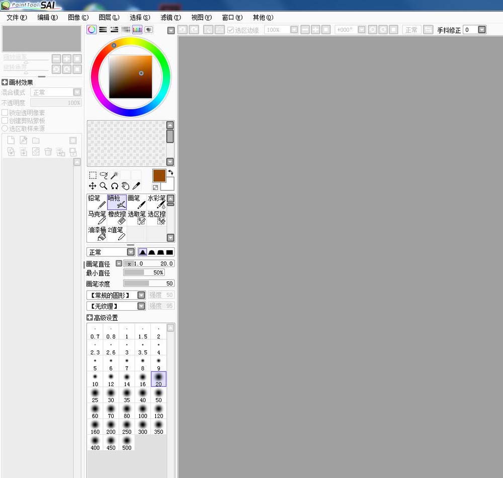 1、首先在你桌面上打开你的sai,这时候还是灰色的如图。点击新建如图二。