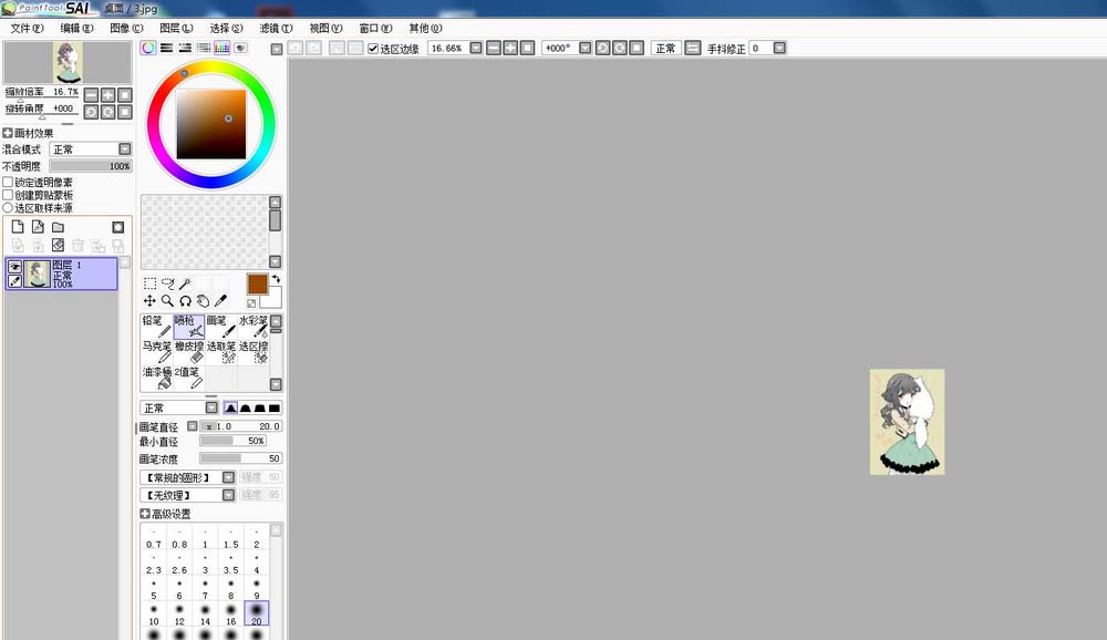 2、第二在桌面或其他你保存图片的地方拖入进sai里如第一张图,