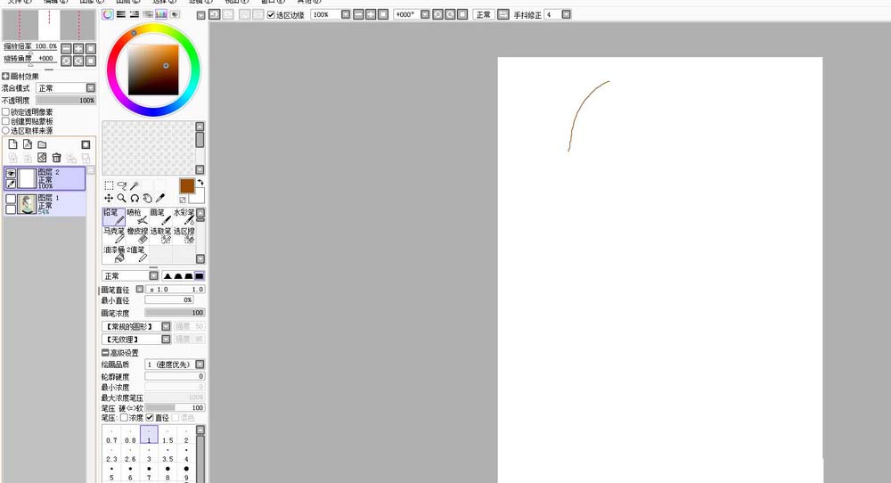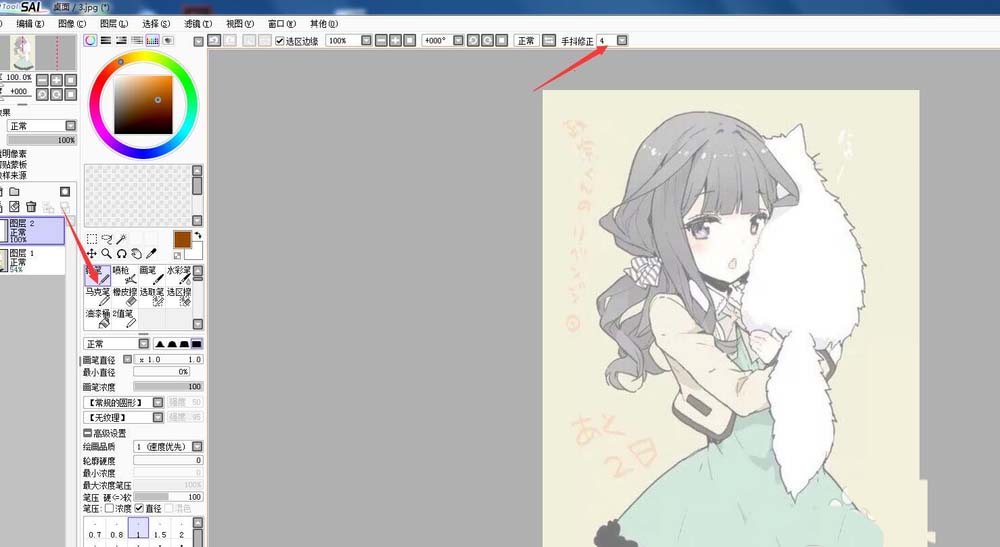 5、选择铅笔或其它你认为漂亮的工具,可以调下防抖动,让你的线更漂亮。