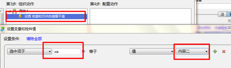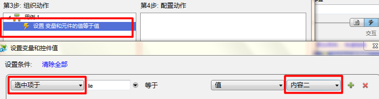 4、为文本元件设置交互事件,下拉狂和列表框交互事件如下。
