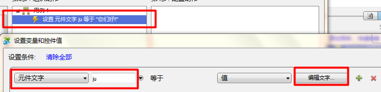 5、为矩形元件设置交互事件,设置如下。