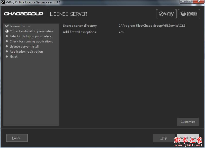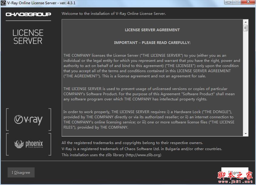 3、跳出界面v-ray license server安装