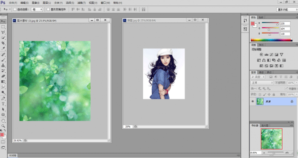 一:在PS中打开如图所示的两张图片,任务是给美女换个背景。