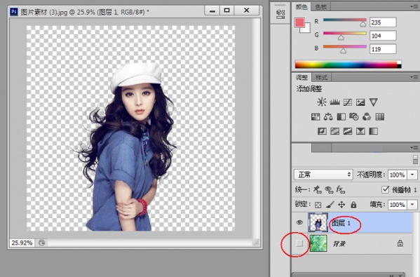 十一:在PS中如果关闭背景图层,可以观察透明背景下的效果。
