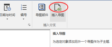 2、在“插入”选项卡上, 插入分支组里,点击“插入导图”;或在当前导图上右击主题,点击插入,然后点击导图;