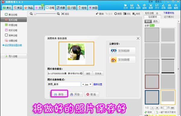 4、经过上面三步,就制作好了一个将要“晒”的照片,接着将其保存到电脑中备用,以便接下来导入。
