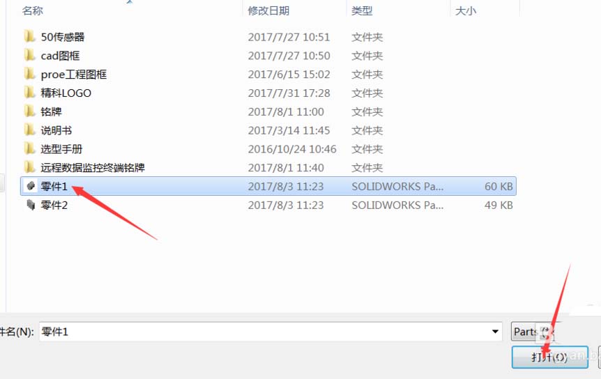 3、单击插入菜单下的零件,弹出下图窗口,选择零件1即圆柱体,然后打开即可