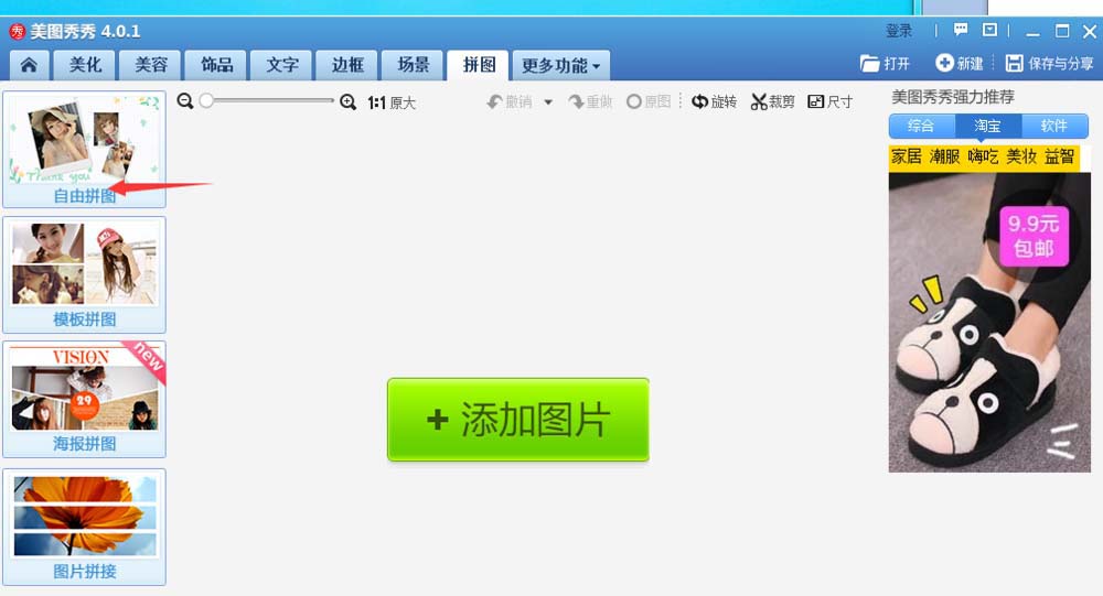 2、点击自由拼图