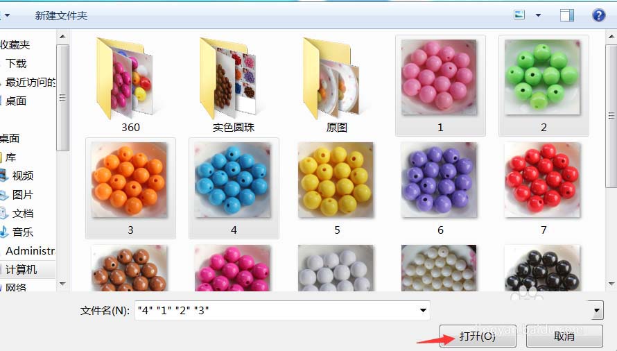 4、 在电脑中选取所需拼图的图片,选中在点打开,
