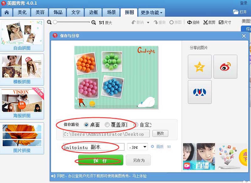 7、 完成后点保存与分享