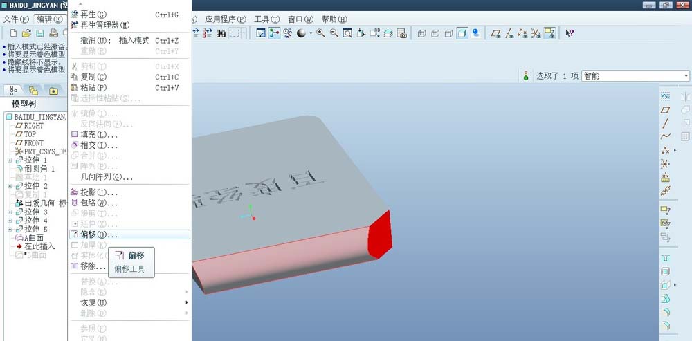 proe5.0使用偏移替换的前提是曲面不能被隐藏,然后就是替换的时候是实体面去替换这个曲面。可以用线框模式确认是否是曲面,曲面的颜色是实体颜色是不一样的。