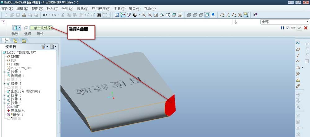 proe5.0中想要使用替换曲面特征,如果我们需要一个曲面作为参考,然后实体上想形成一个完整的特征,下面我们就来看看具体的教程。