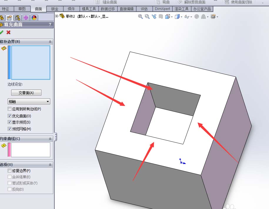 Solidworks怎么在曲面上拉伸? solidworks曲面拉伸的实例教程