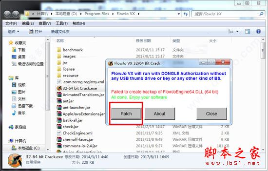 6、打开“Crack”文件夹,将FlowJo 10破解补丁”复制到安装目录下运行,点击Patch完成破解