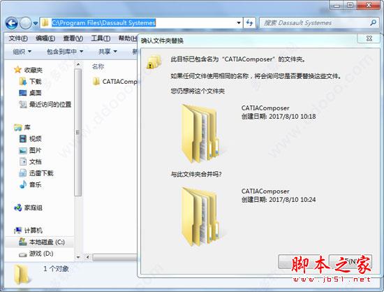 5、安装完成后,下载CATIA破解补丁。打开“CATIAComposer”文件夹,将破解补丁“CATIAComposer”复制到默认安装目录C:\ProgramData\Dassault Systemes下覆盖源文件