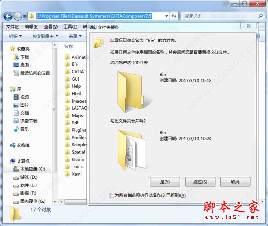 6、打开“7.5”文件夹,将破解补丁复制到默认安装目录C:\Program Files\Dassault Systemes\CATIAComposer\7.5下覆盖源文件