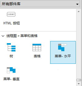 1、做导航,在库里选择菜单-水平,将其拖拽到设计区,如下图所示: