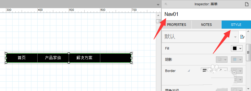 3、选中菜单,在右侧编辑区选择样式更改导航背景色和字体颜色。在编辑区上面可以给元件起名,建议采用英文命名,命名格式例如PasswordInput01或Password01,它的含义是序号01的密码输入框。格式说明:“Password”表示主要用途;“Input”表示元件类型,一般情况下可省略,当有不同类型的同名元件需要区分或名称不能明确表达用途的时候使用;“01”表示出现多个同名元件时的编号;单词首字母大写的书写格式便于阅读,如下图所示:
