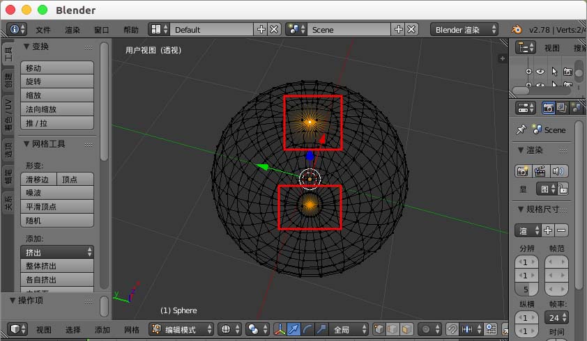 2、进入编辑模式,选择球体的两极的两个顶点。