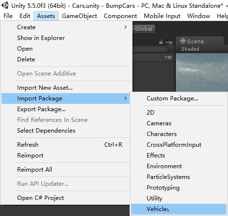 3、引入标准资源包的Vehicles资源包。