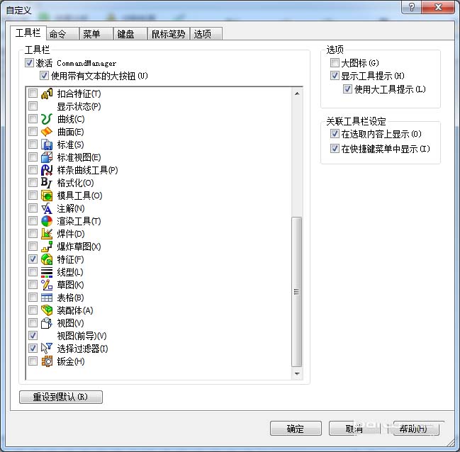 以上就是SolidWorks中自定义工具栏的方法,希望能帮到大家,请继续关注脚本之家。