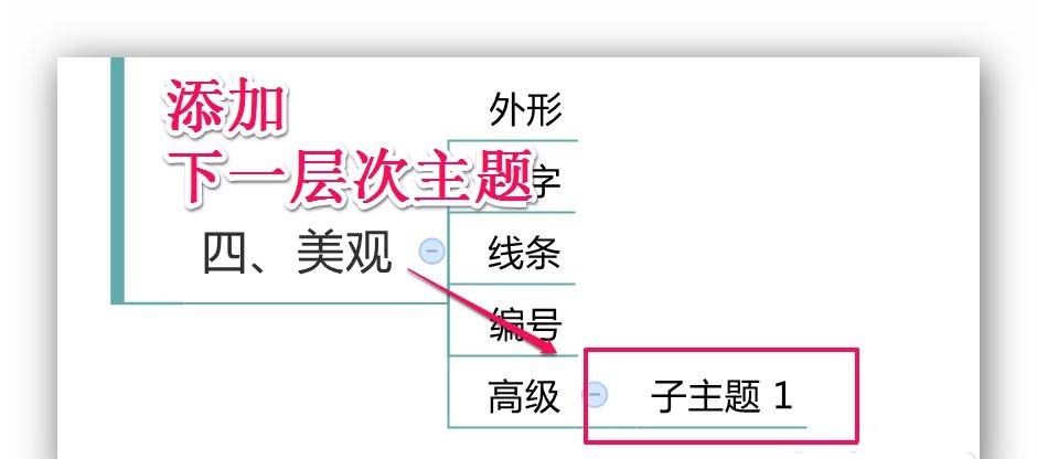 选中主题,点击键盘[Tab键],实现:添加下一层次主题。
