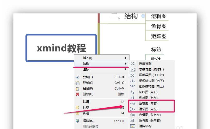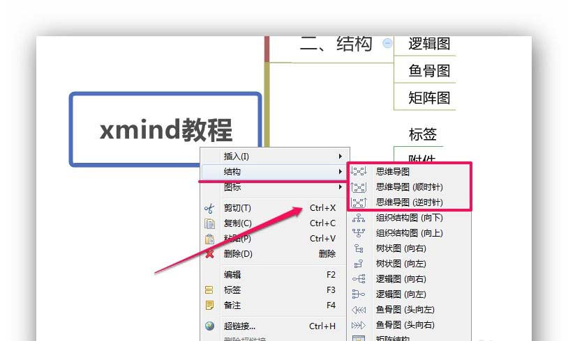 选中主题,右键点击,选择[结构]→思维导图。