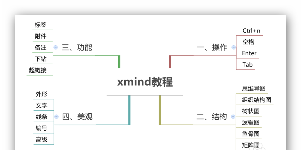 5、总结绘制思维导图,只需要这四种操作。简单吧!