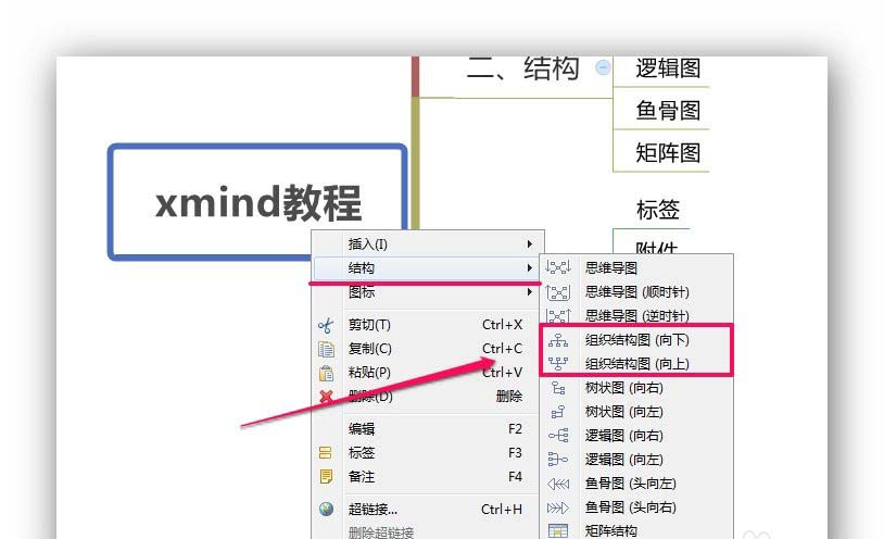 选中主题,右键点击,选择[结构]→组织结构图。