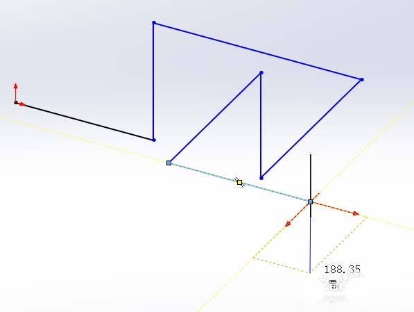 4、按“tab”键可以在三个基准面之间依次切换,避免了不停的建立基准面,快速简单的画出空间直线。