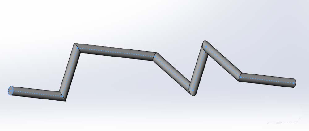 solidworks建立空间立体模型时需要不断变换以建立合适的基准面,相对比较麻烦,还是3d草绘比较好用吧。