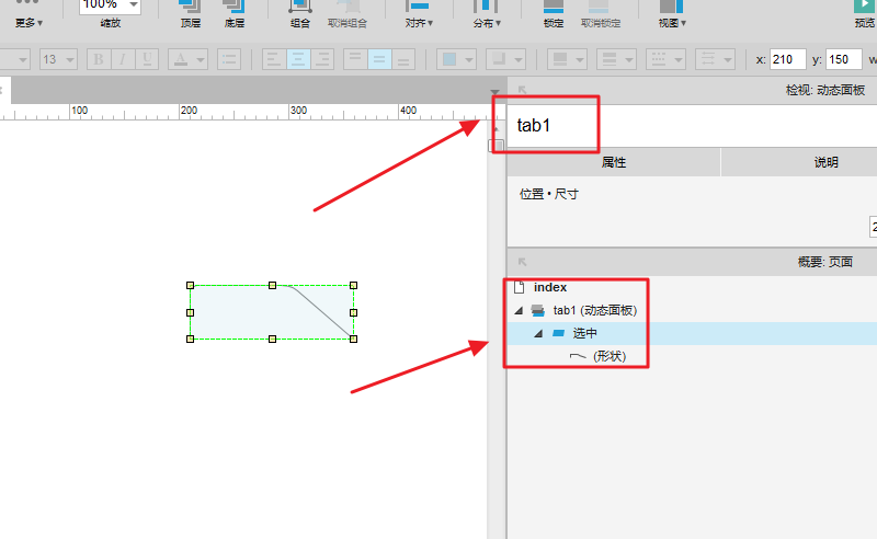 3、按照图示,对元件进行命名,状态命名操作,名称分别为 tab1、选中